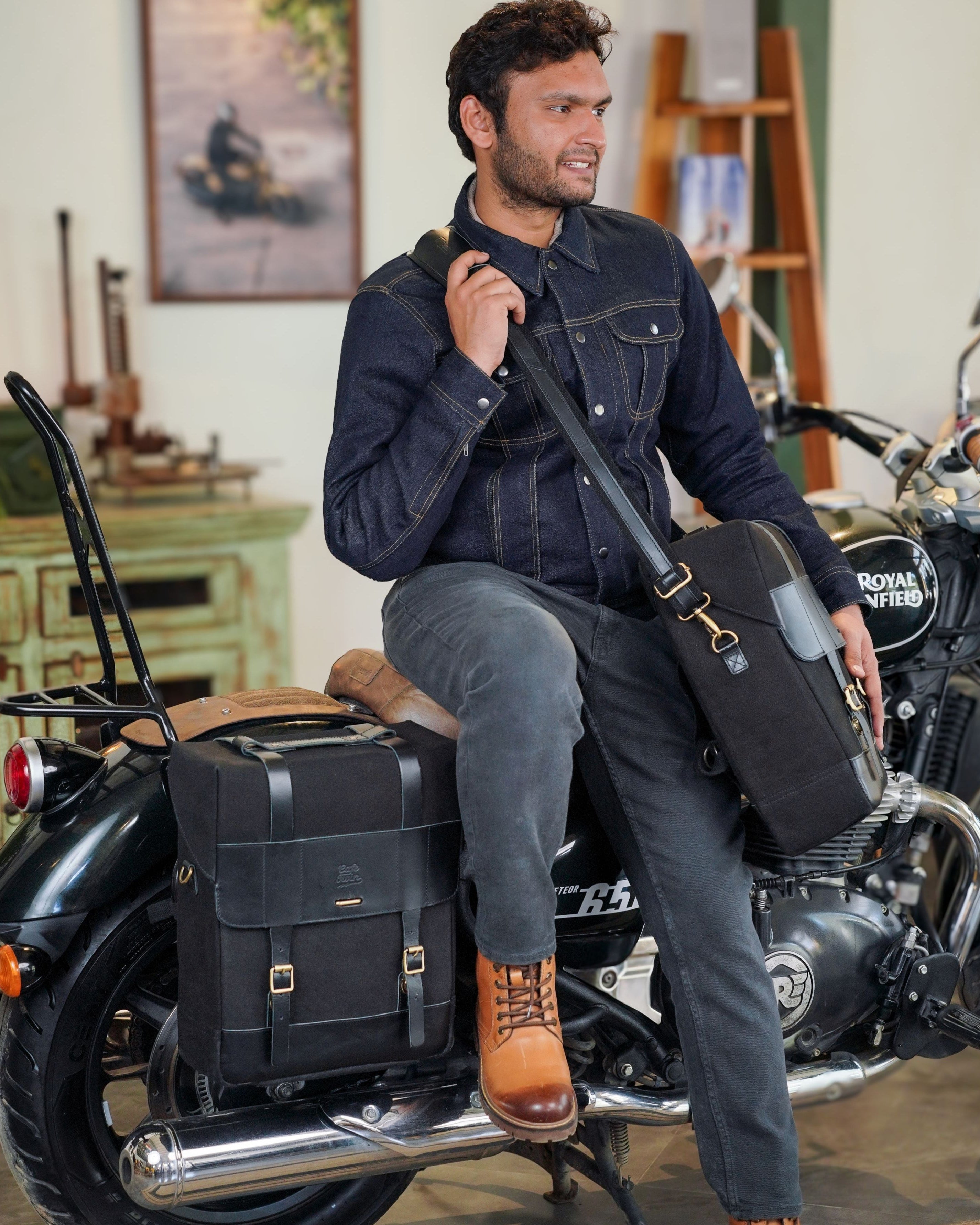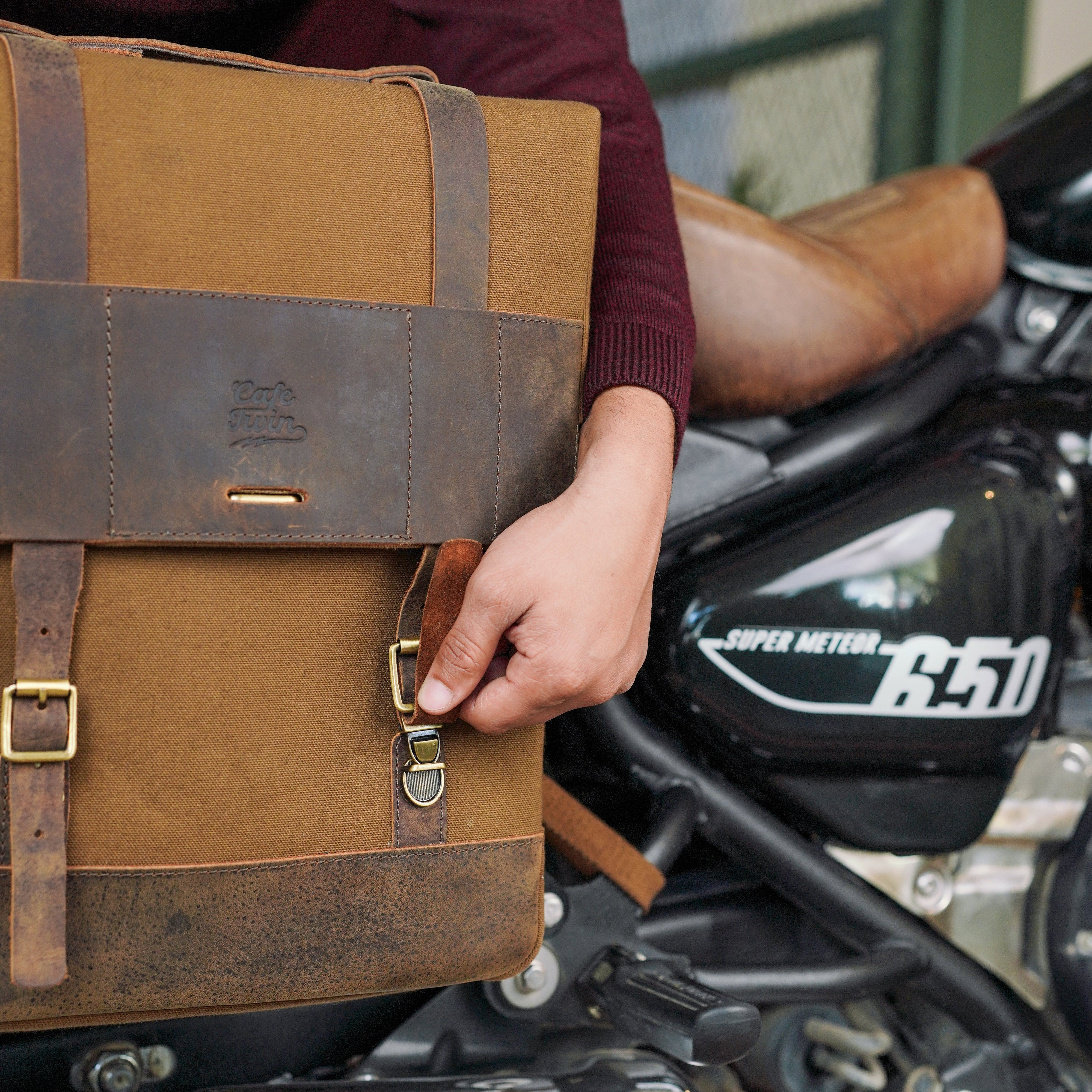 the bags come with bespoke saddle stays to fit the super meteor or shotgun 650 for a fit so sung, you’d think the bike came with the bags.