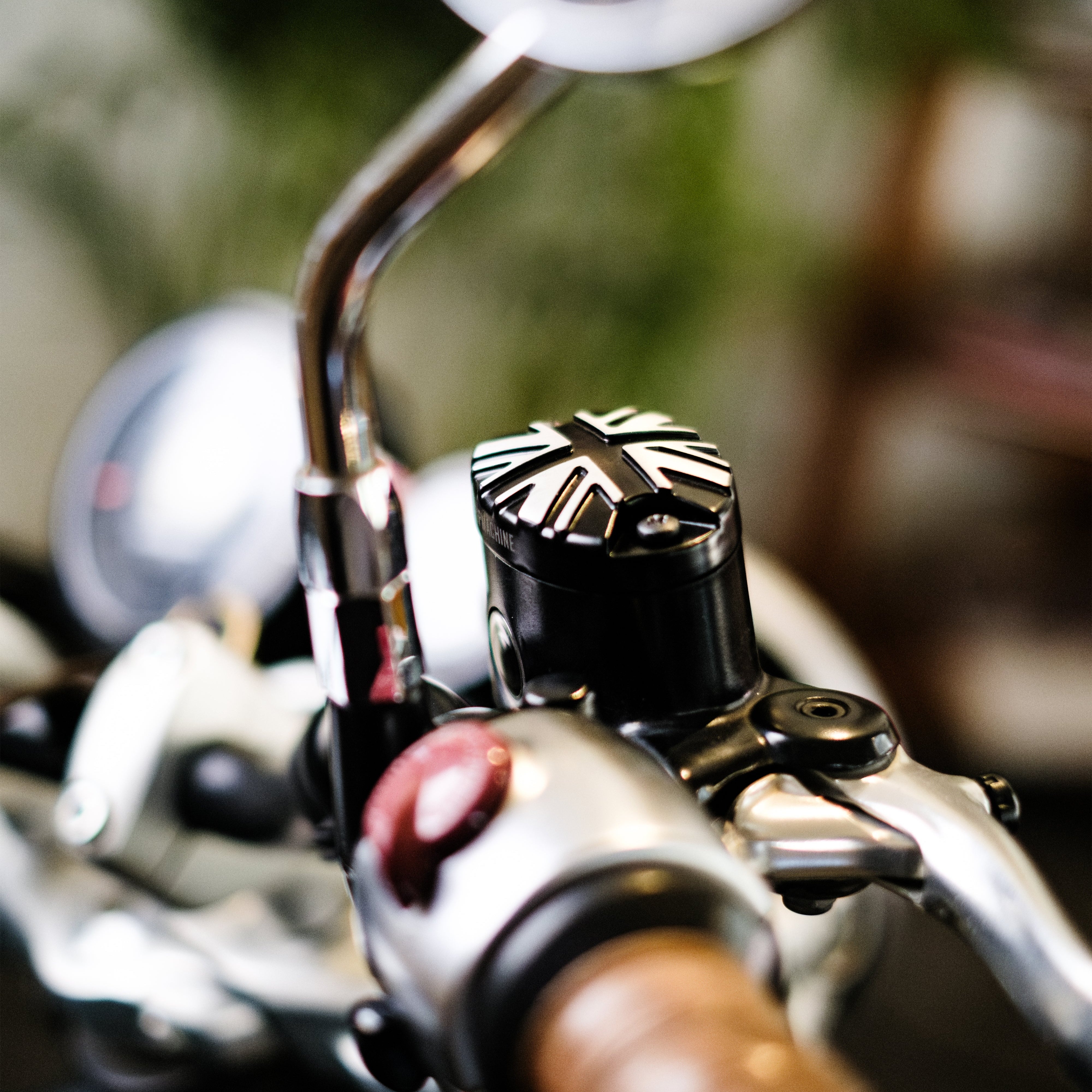 made of die-cast aluminum, the brake oil reservoir cap is an accessory designed to give a touch of personality to your royal enfield. The design, inspired by the historic british flag, pays homage to the origins of the legendary brand, combining style and functionality.