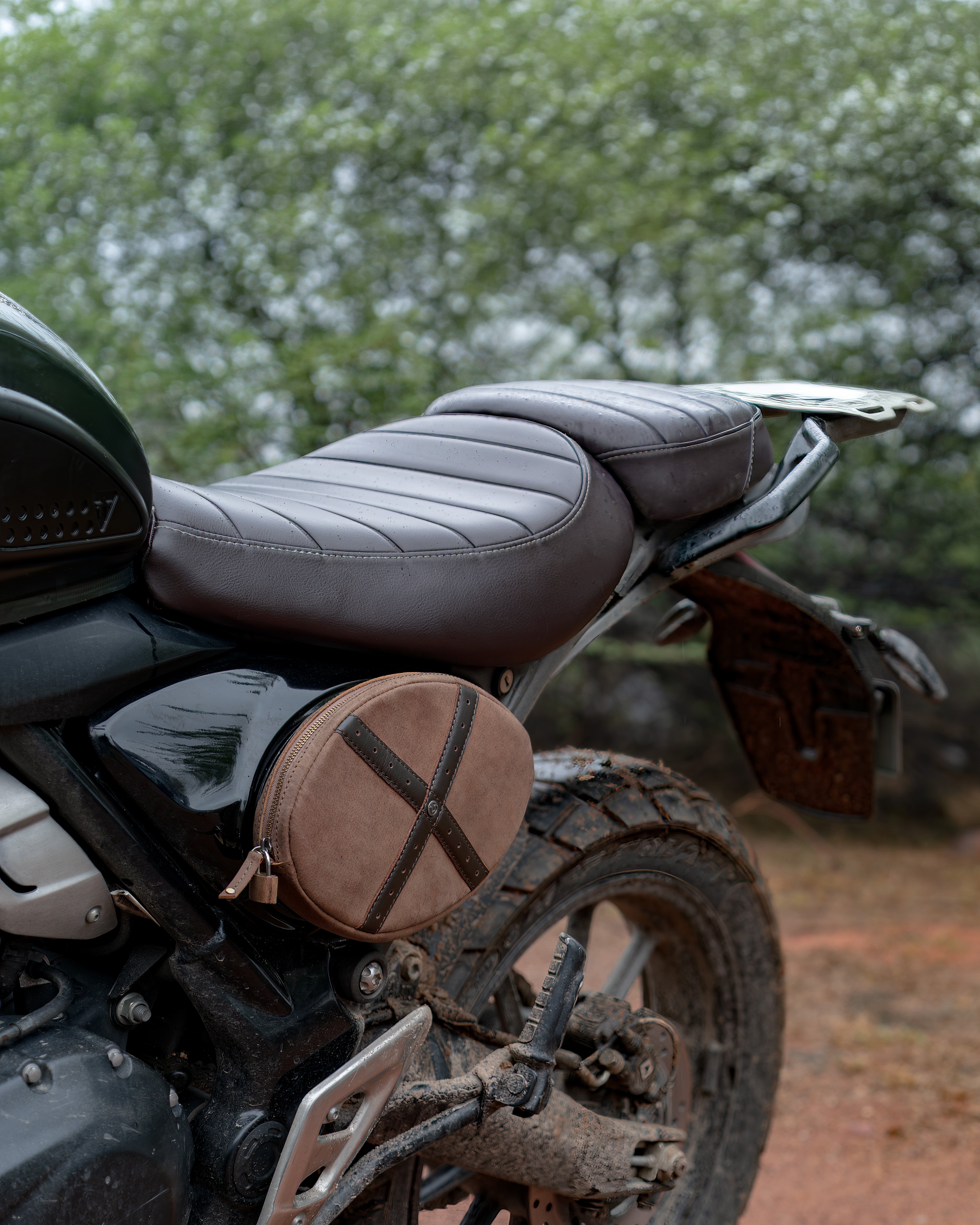 scramblers are meant for places where there are roads, & where there are none. when you’re out scrambling, luggage is the last thing on your mind. but every ride still needs a few essentials, papers, tools, maybe a snack. that’s where the scrambler egg comes in.