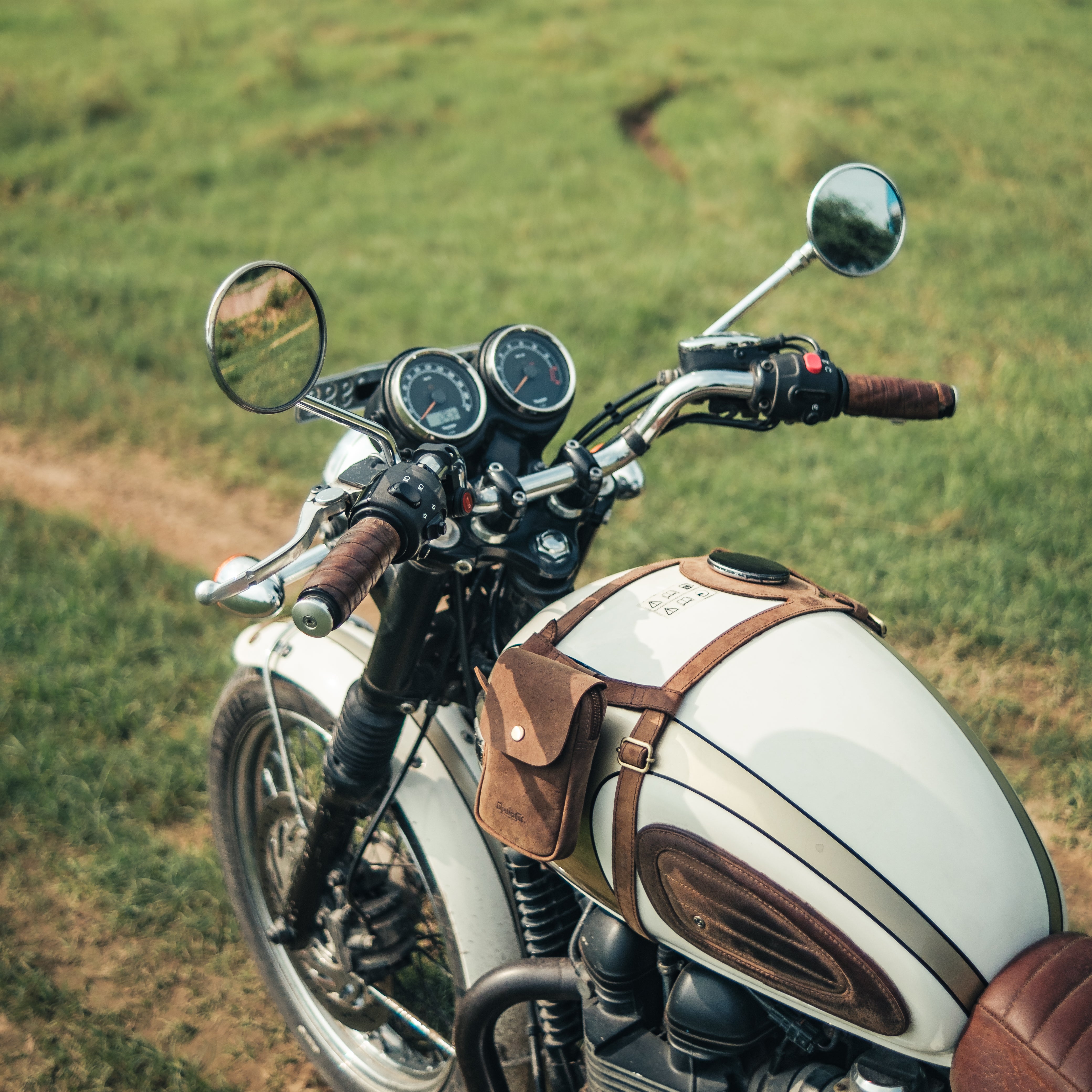 but wait, there's more! Add our utility pouch to your order, and your motorcycle gets an instant upgrade. It's not just a pouch; it's a sidekick that attaches to the strap, ready to carry your essentials. Plus, when you're off the bike, it transforms into a belt pouch – the ultimate multitasker.