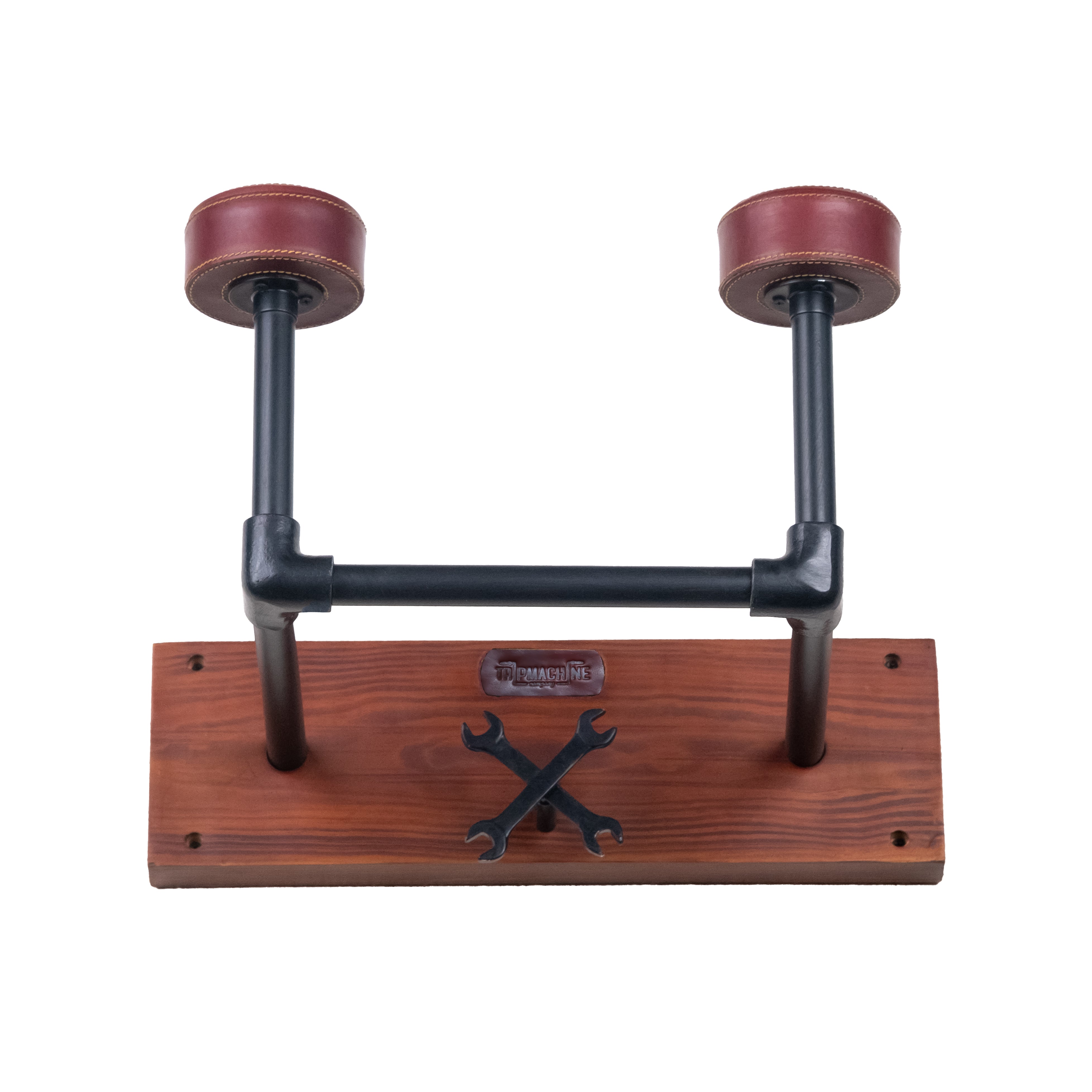 a vintage looking wood piece that mounts the sturdy iron rods but ends with a delicately designed leather padded top. it ensures your helmet’s safety isn't compromised as the design offers maximum contact surface area. it can house all your gear in one place whether it is your gloves, jacket or your magnetic tank bag.