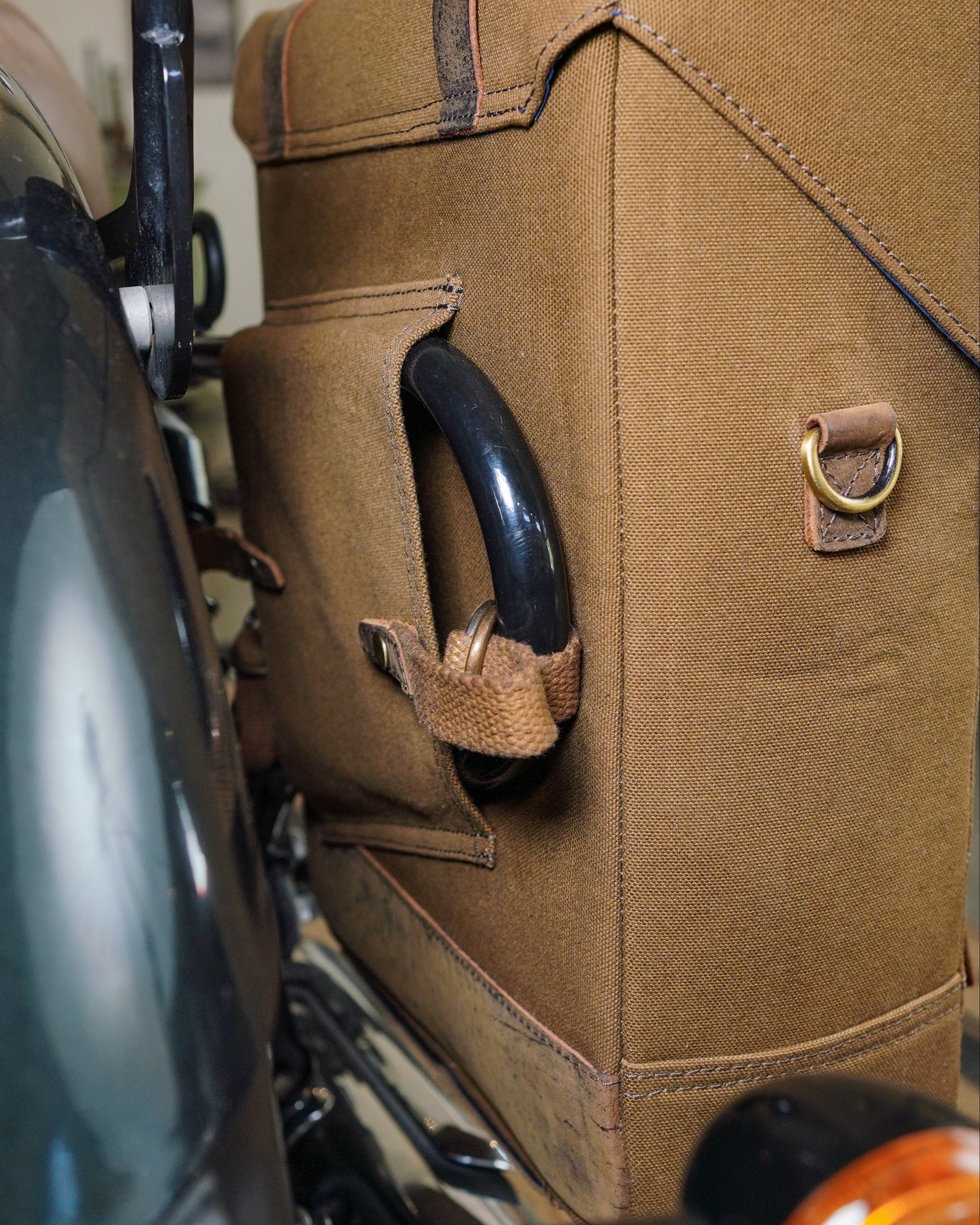 the ventura is our take on the perfect saddlebag. inspired from the saddlebags used in world war ii, these bags have been crafted from 16 oz heavy duty canvas and our signature trip machine leather.