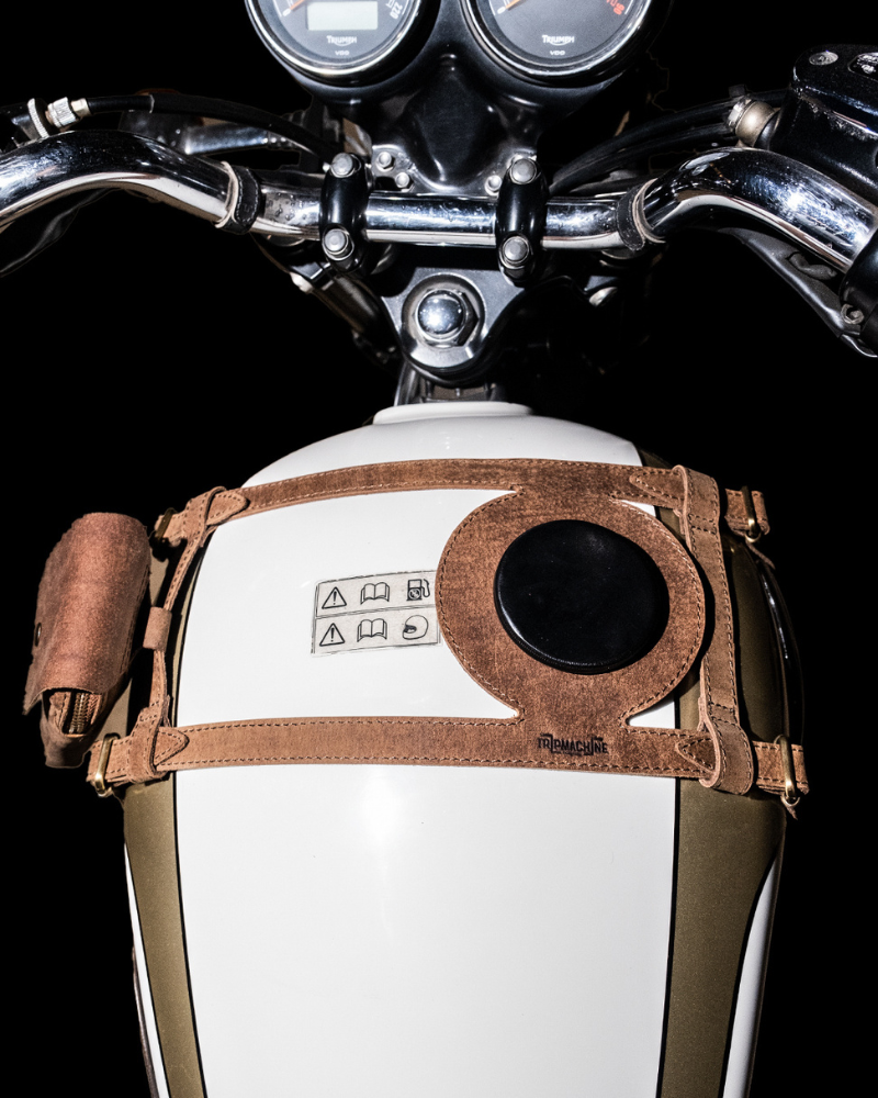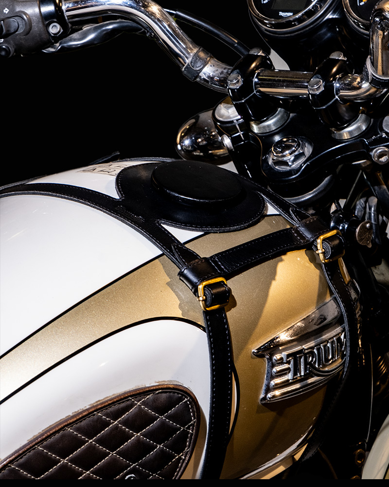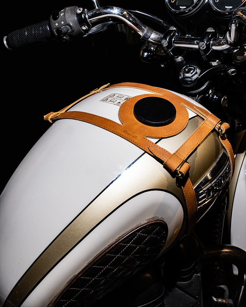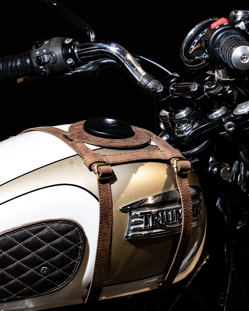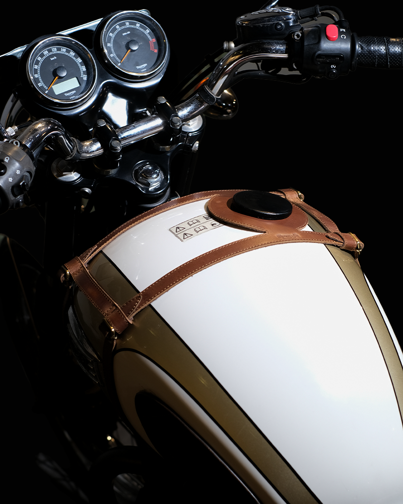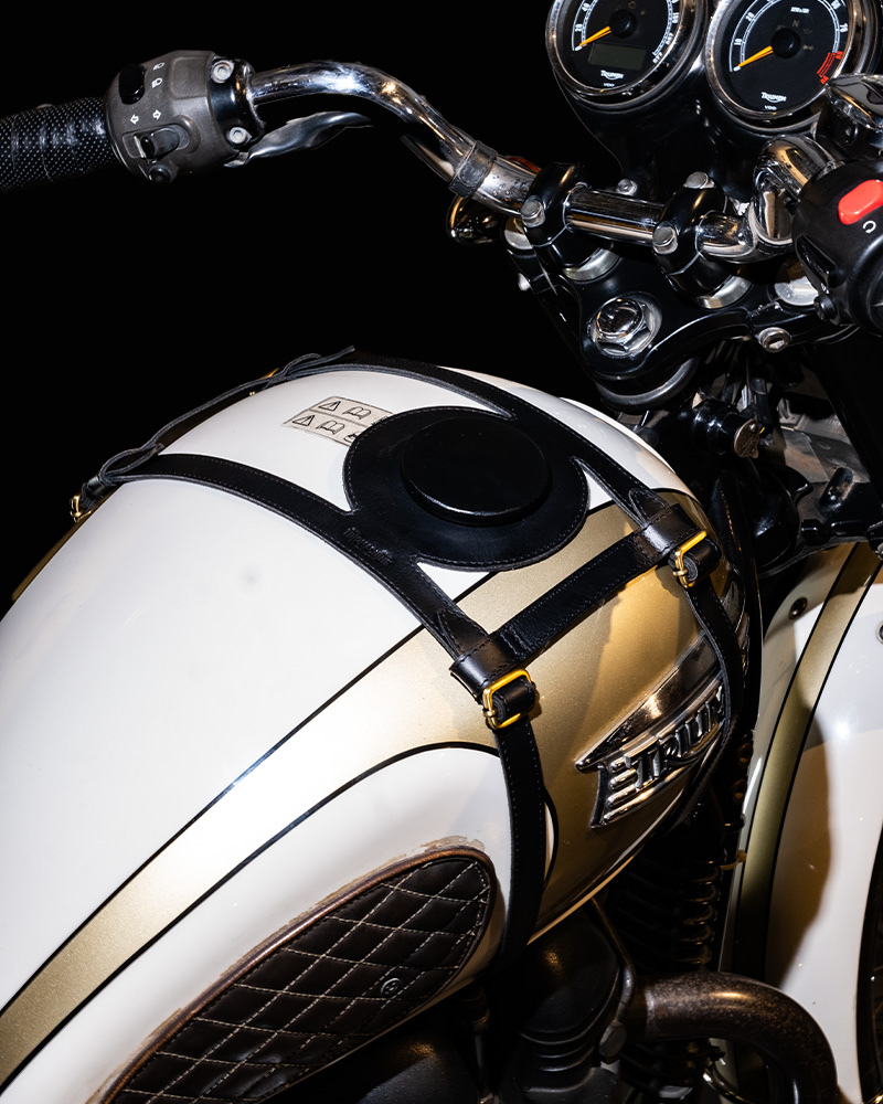 tank strap crafted to fit triumph 400