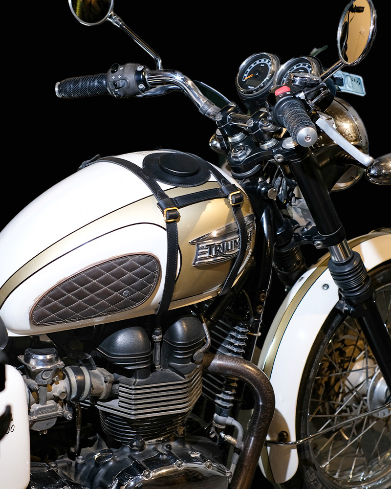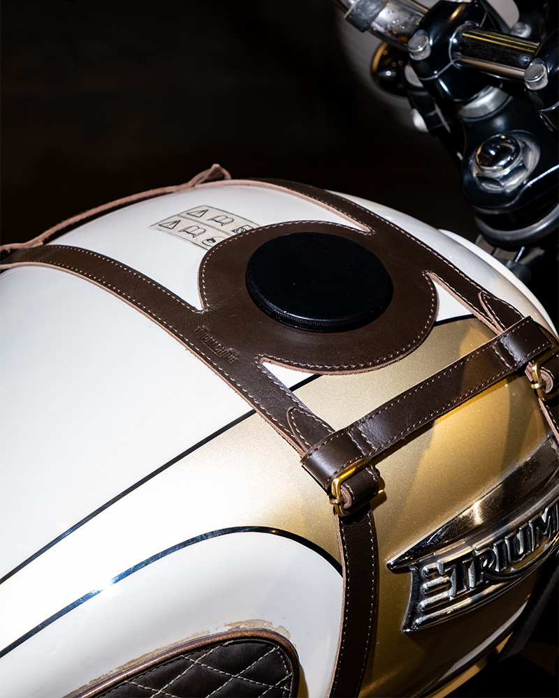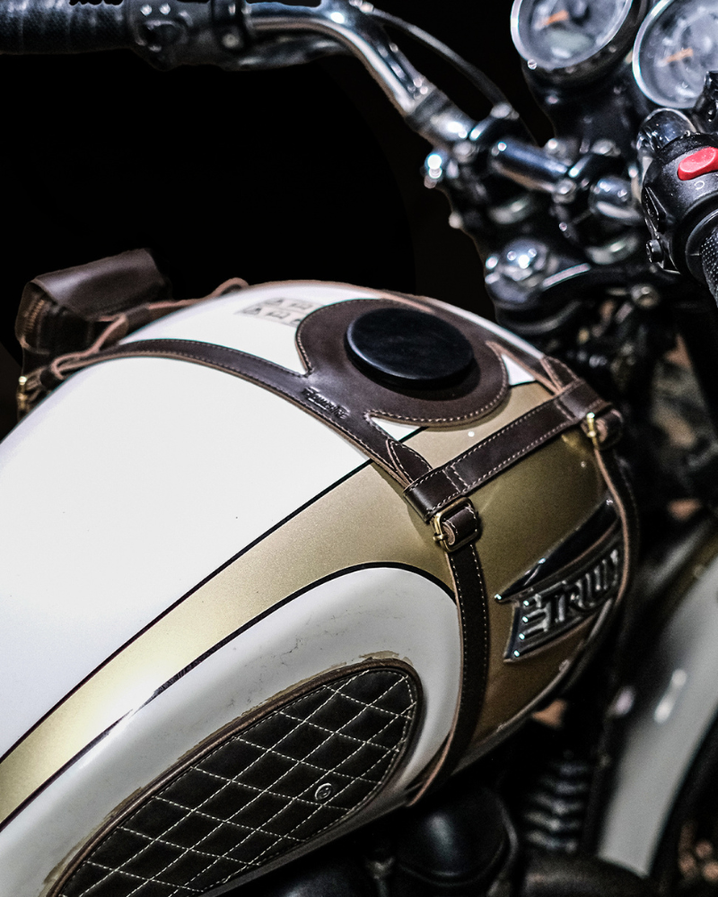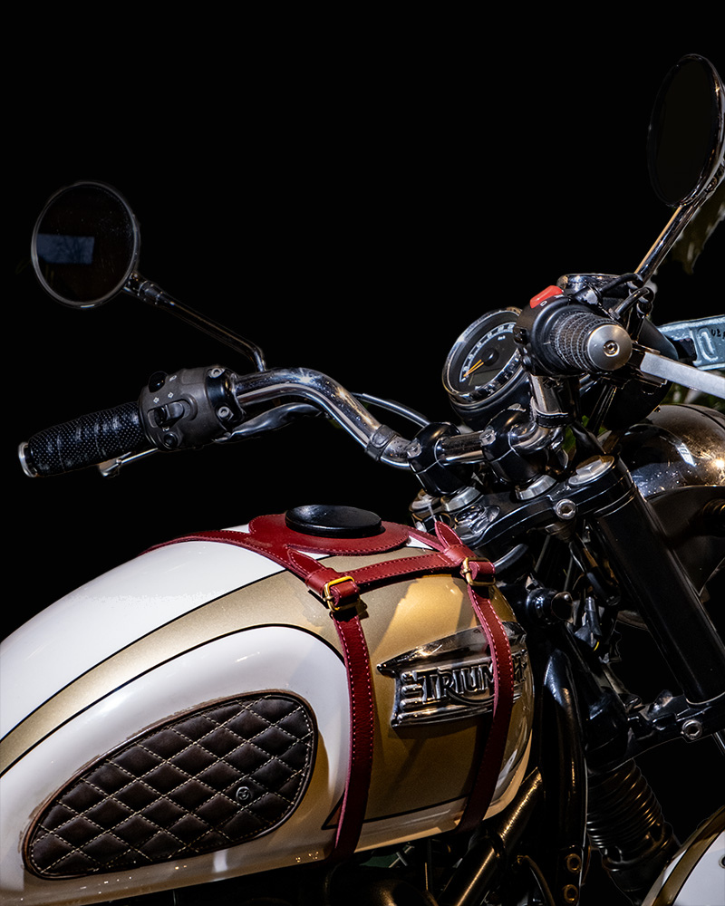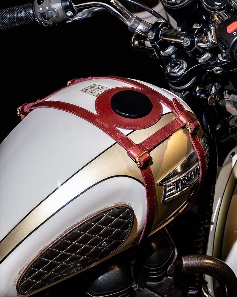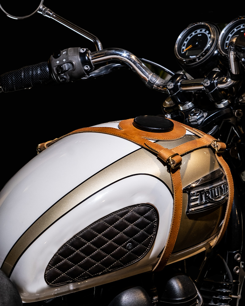 tank strap crafted to fit triumph 400