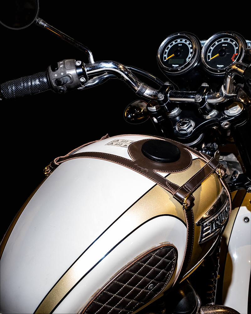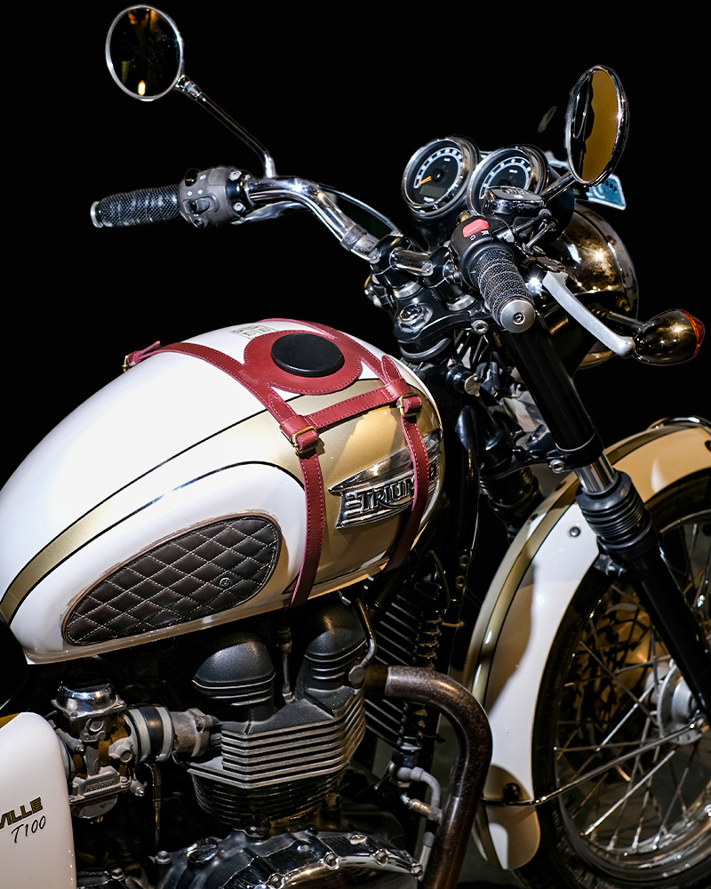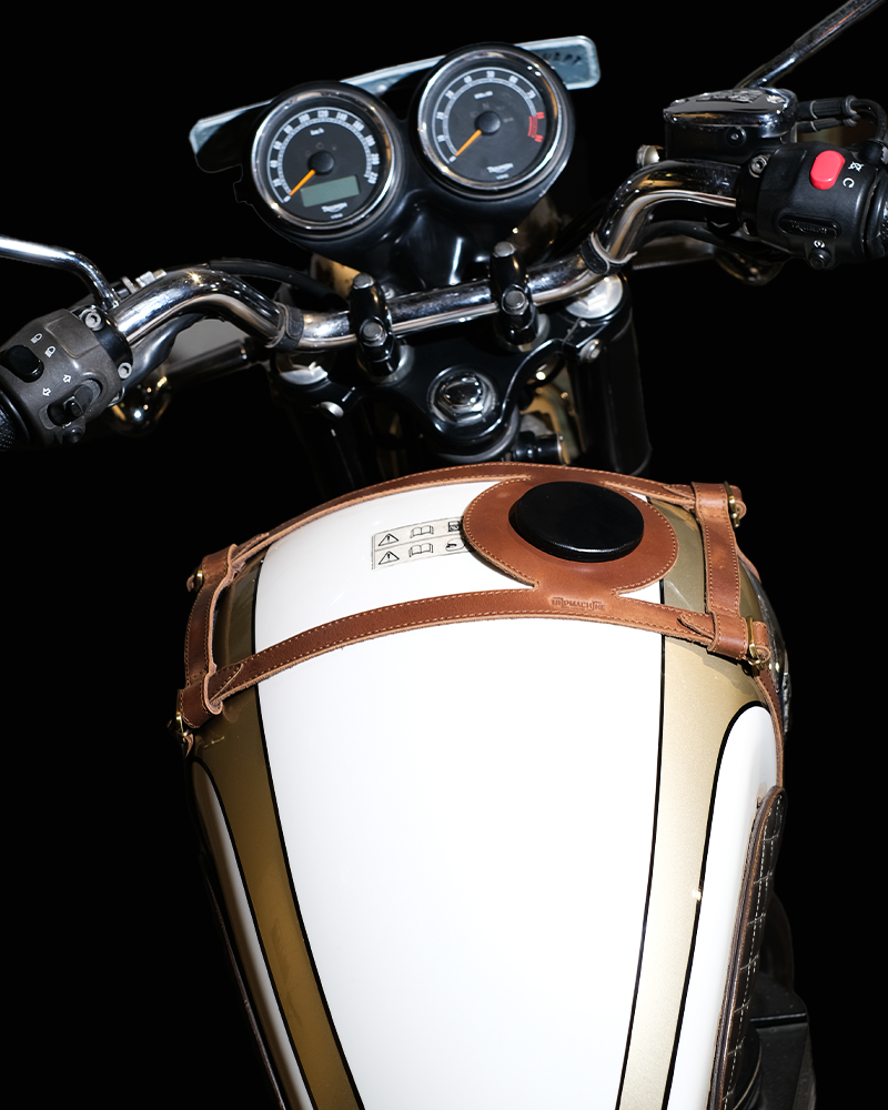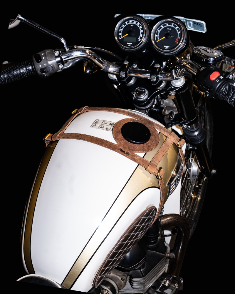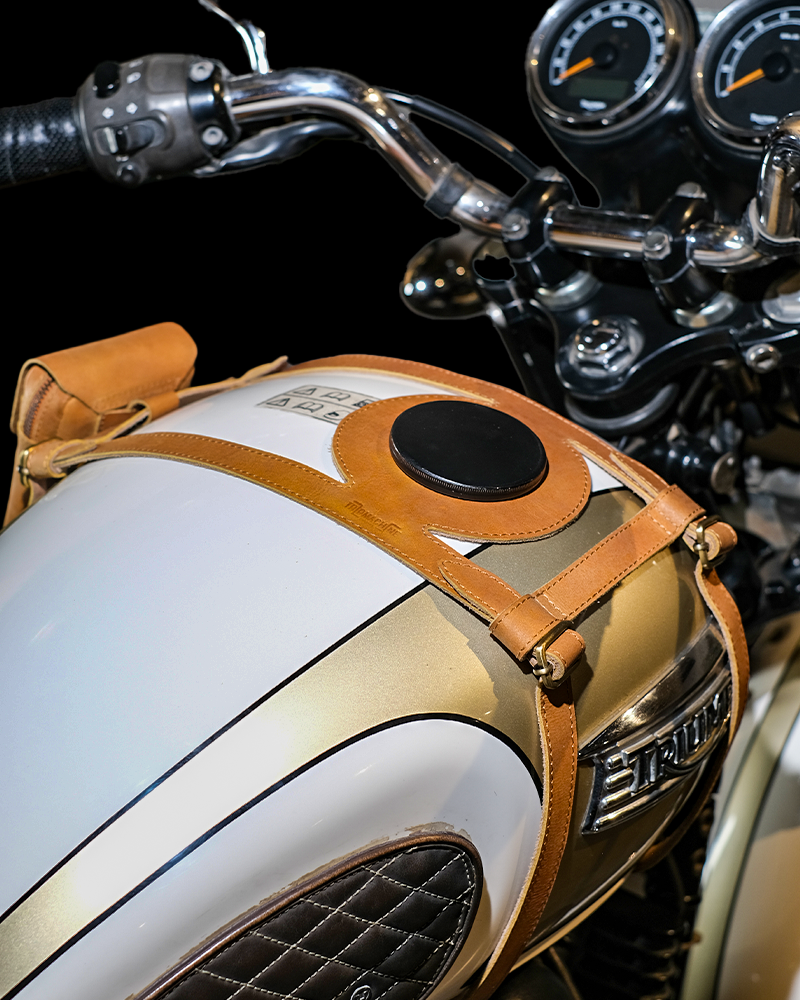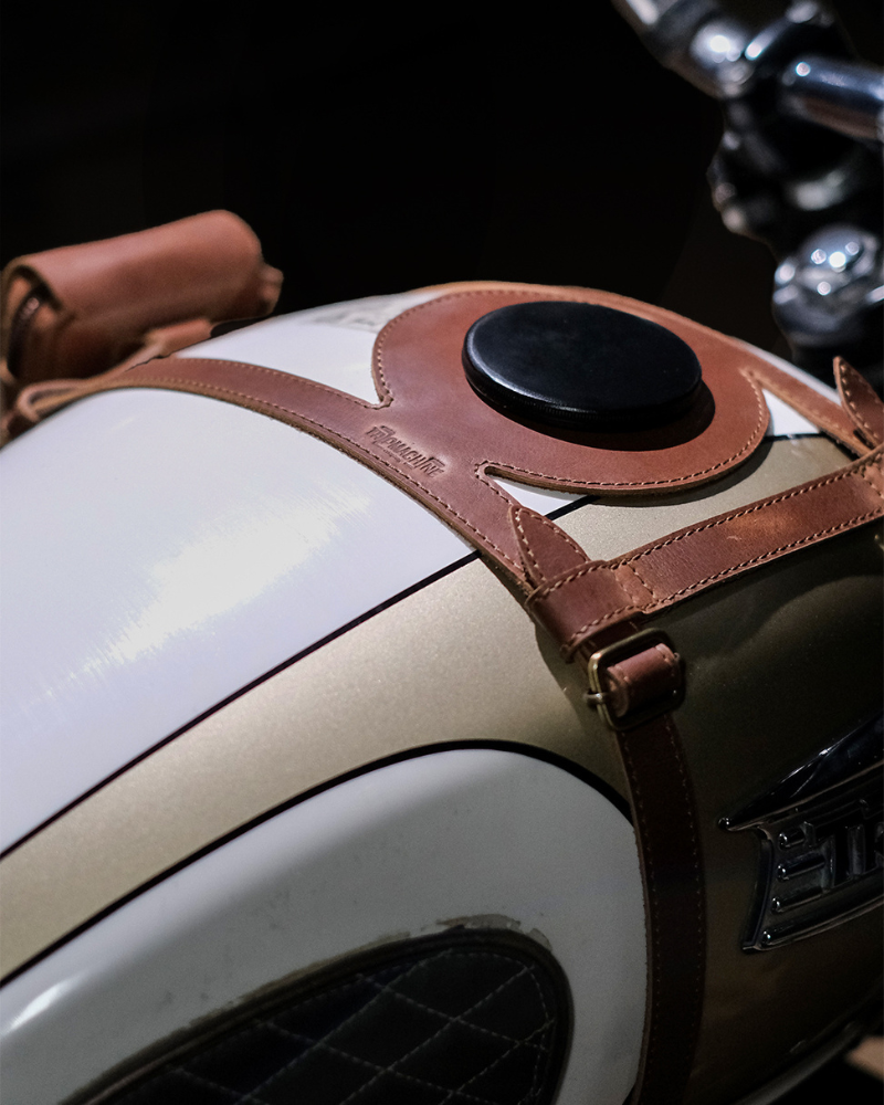 tank strap crafted to fit triumph 400