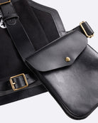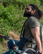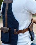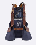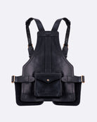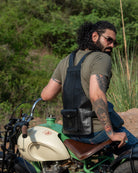 choose between signature trip machine full leather or a rugged canvas + leather construction — this vest fits right over your riding jacket and adjusts to riders of all sizes. two easy-access pockets up front, one large stash pocket at the back, to carry ride essentials. the hydration bladder stores 1.5 lts. of soul fuel and comes with insulated pipe that can be tucked away in two hidden compartments.