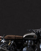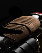 the touring seat is a slim profile hard seat handcrafted specially to fit the royal enfield interceptor and continental gt 650. it is forged using heavy duty water repellent suede that will age with use.