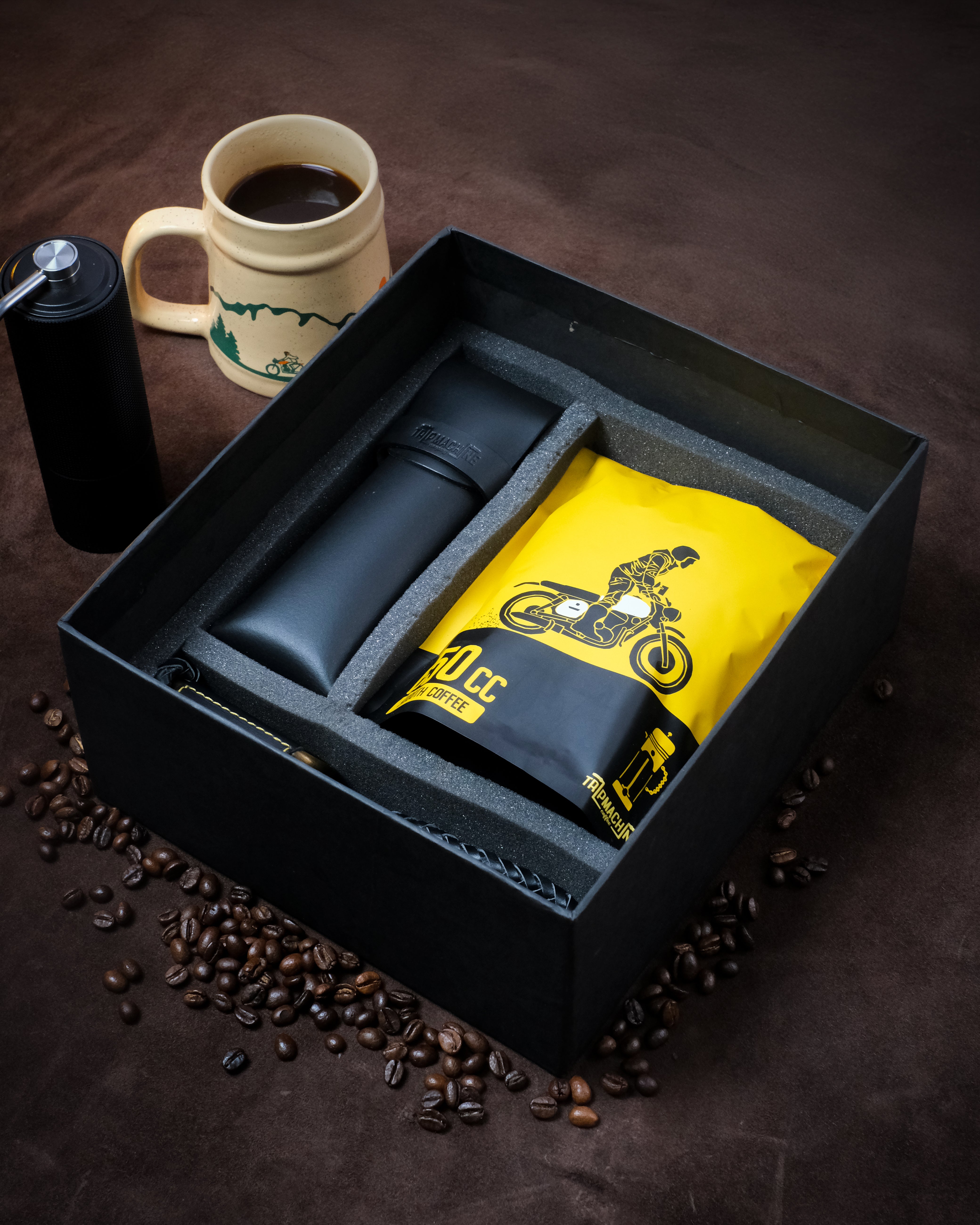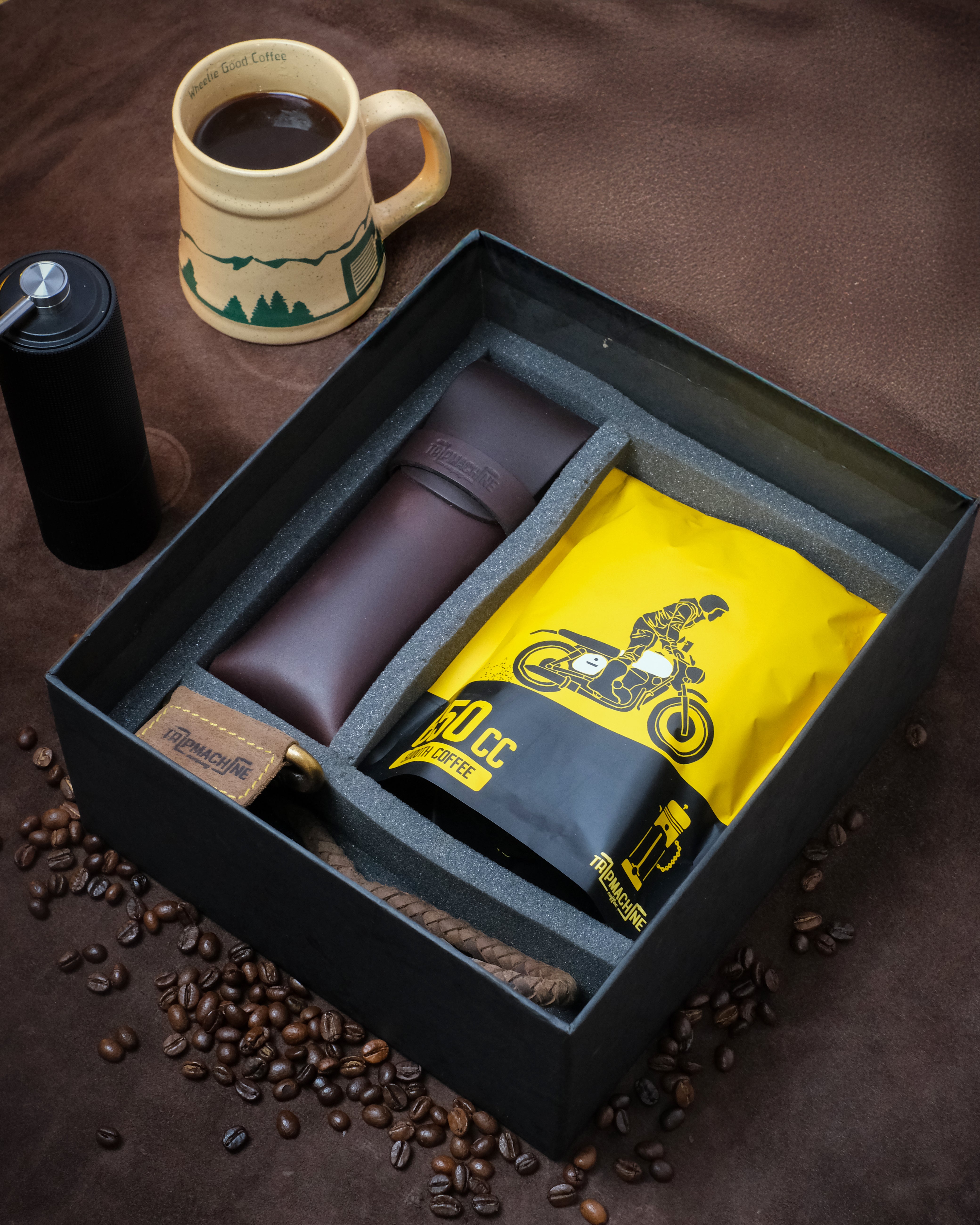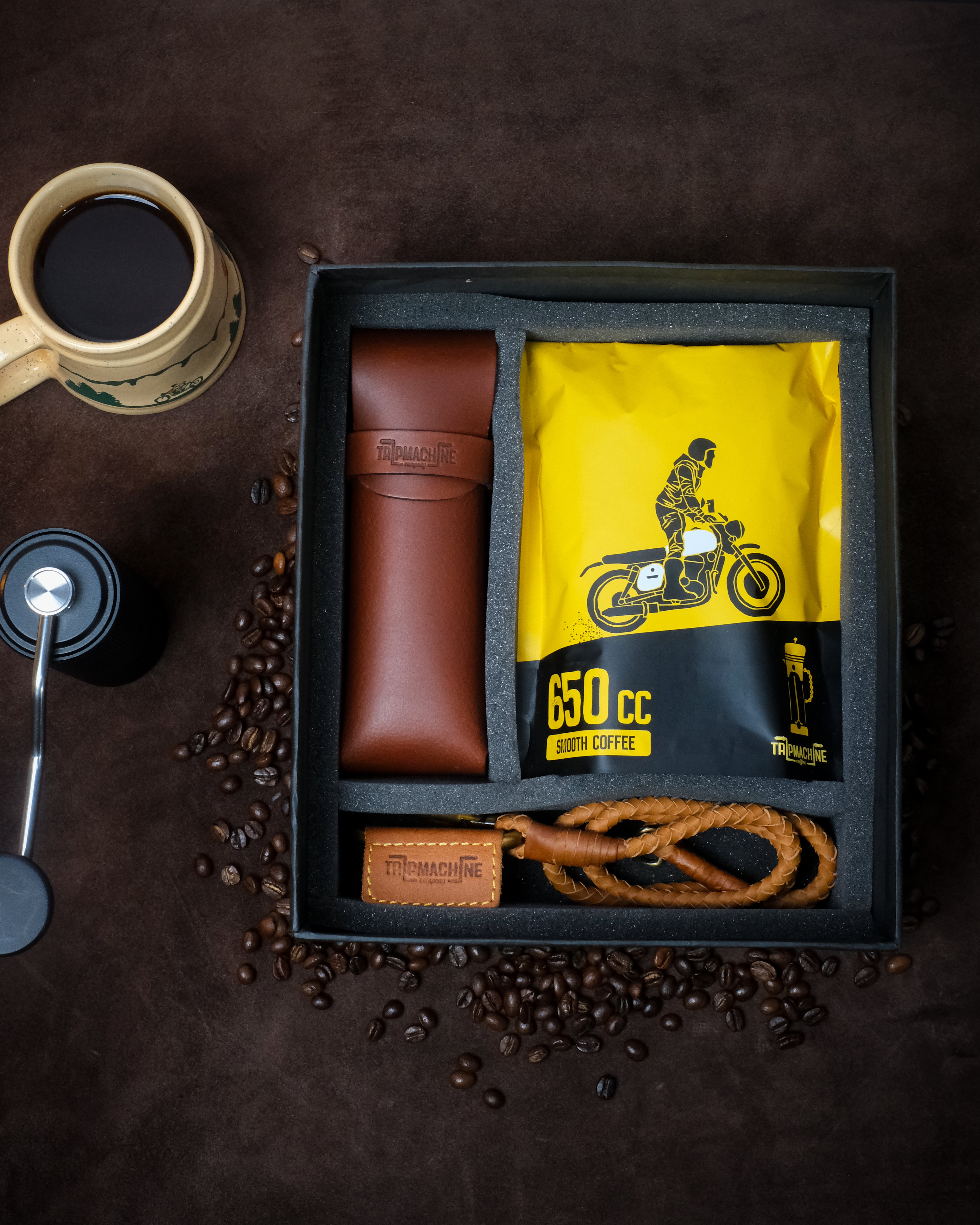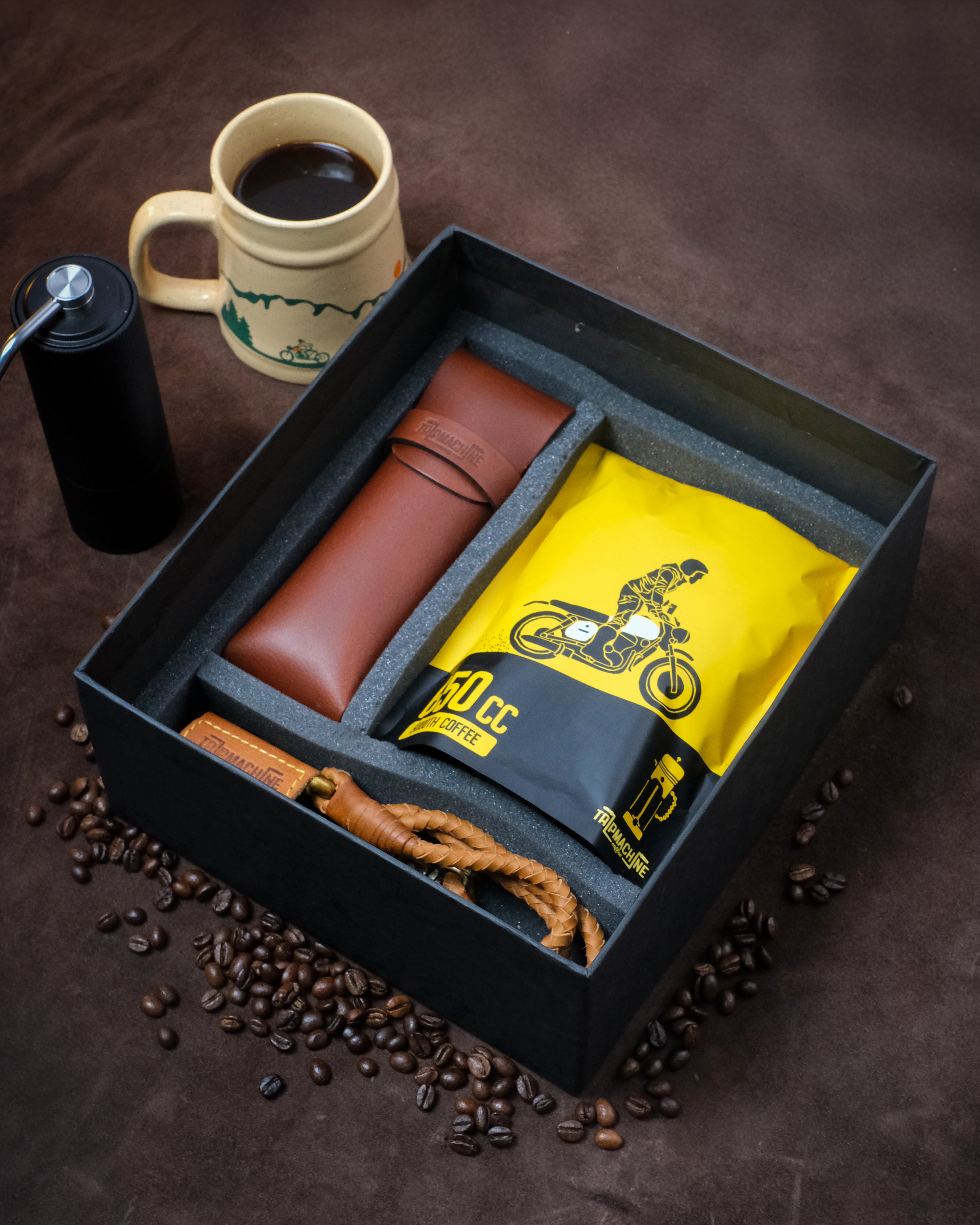 lifestyle gift combo for riders: coffee, braided keychain & sunglasses case