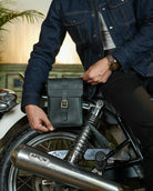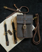 the moto sling is inspired from the iconic map cases used in world war ii. handcrafted from 2.2 mm thick heavy duty leather, the bag is built like a tank, to serve you for decades.