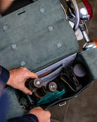 the bag even comes with a leather shoulder strap for easy off-bike use