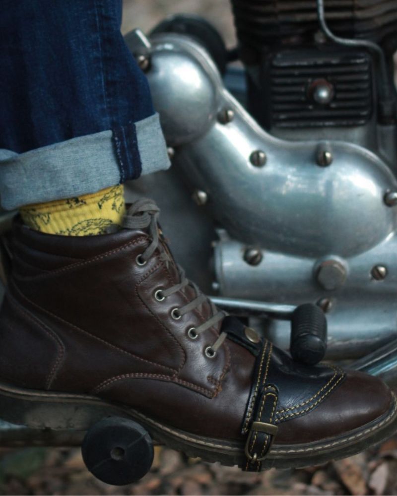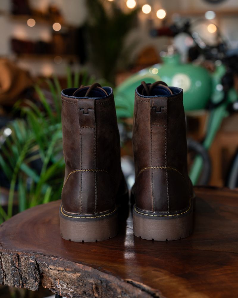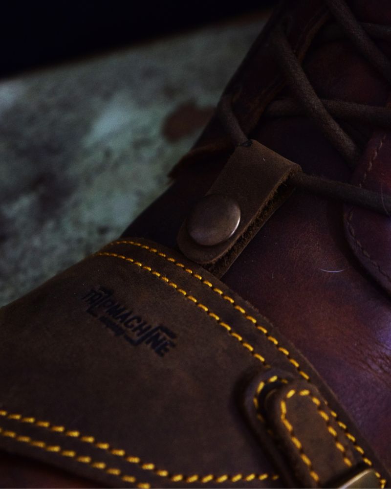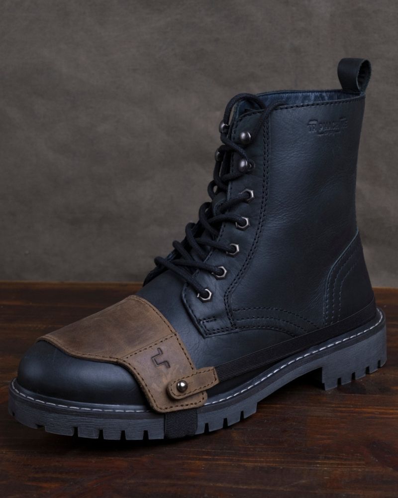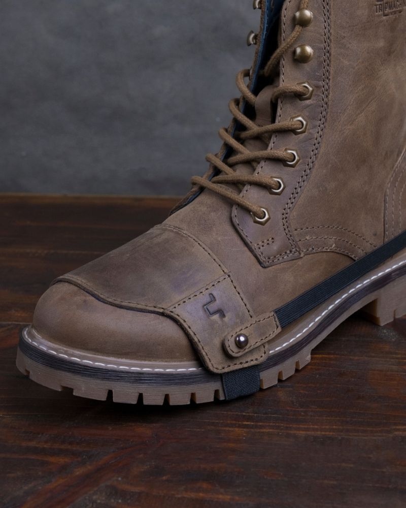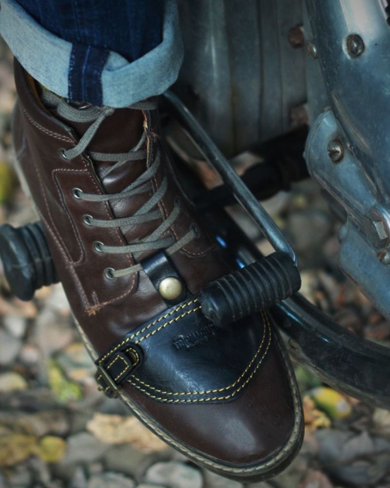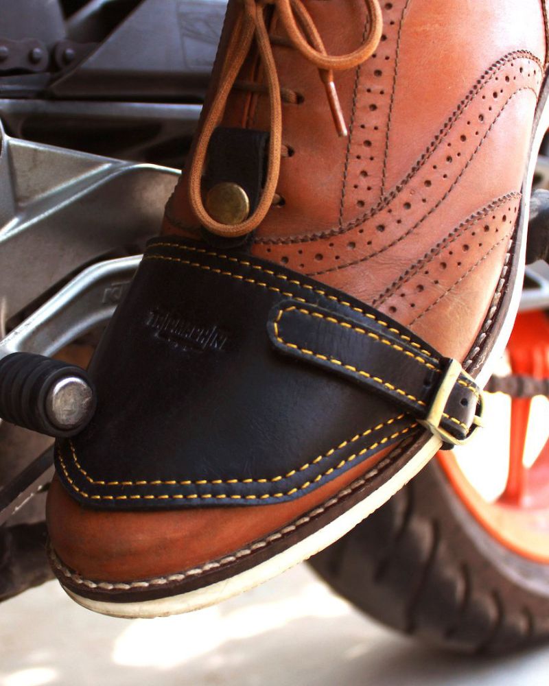 the trip machine moto moc-toe features an additional 1.8 mm mould at the toe and heel along with ankle protectors. crafted from heavy duty abrasion resistant leather, the boots are engineered to protect incase of the unfortunate slide. the sole is resin based thats curated for extra grip on the road. with a metal shank, texon based insole and a premium lycra lining ensures that your feet have utmost comfort on long days.