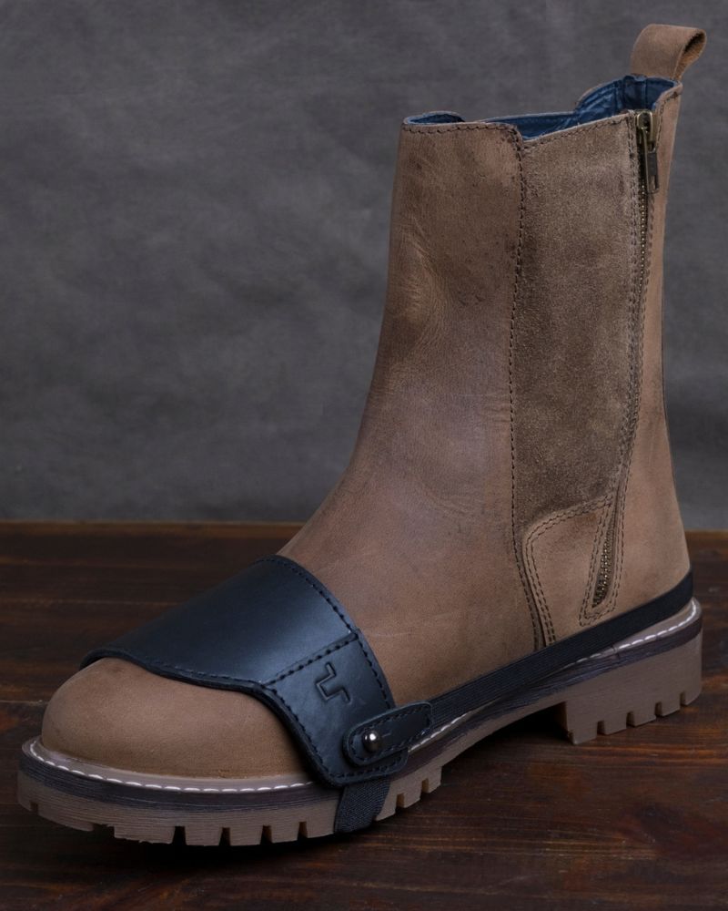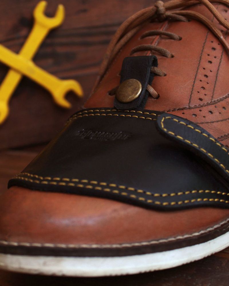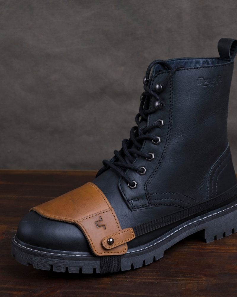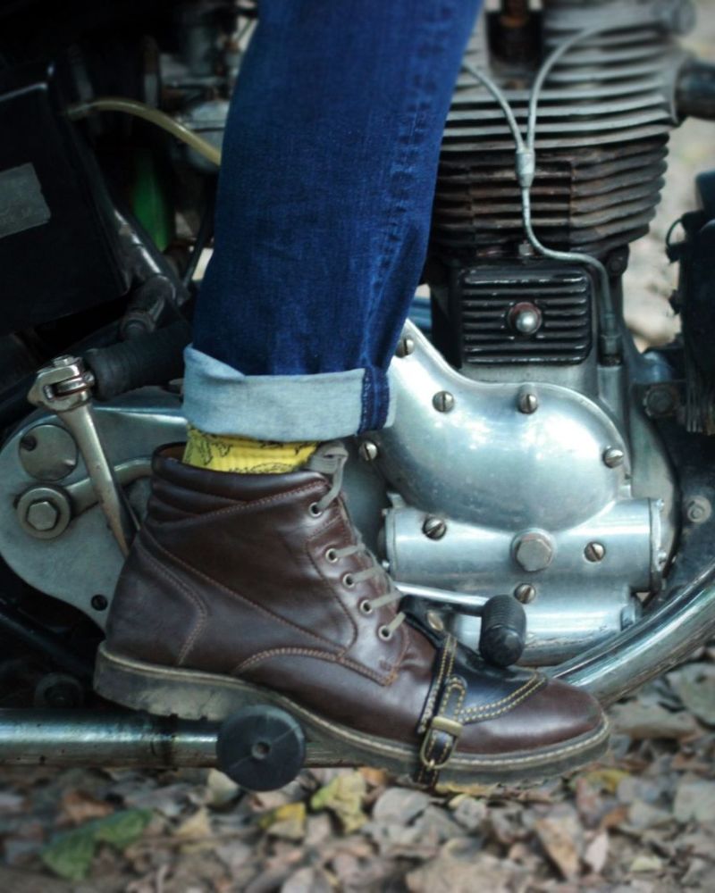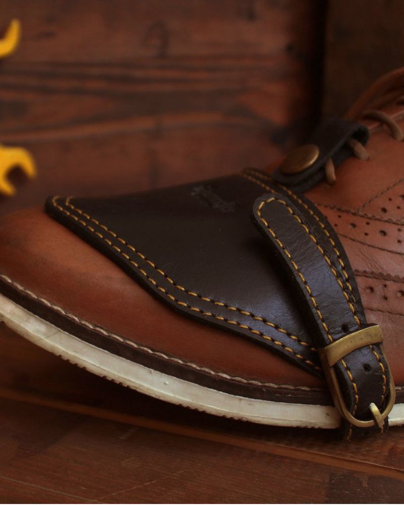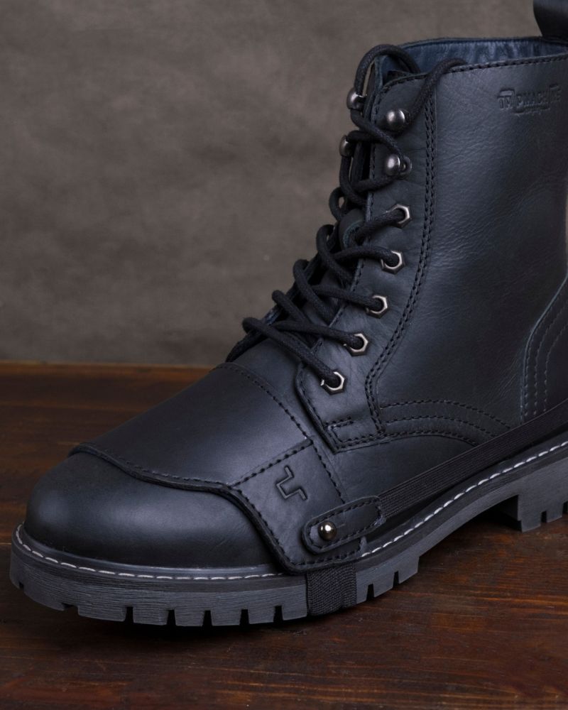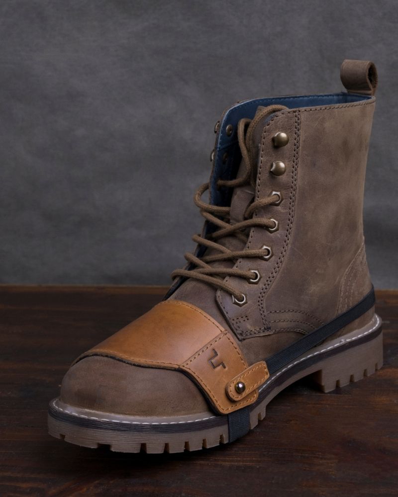 the trip machine moto moc-toe features an additional 1.8 mm mould at the toe and heel along with ankle protectors. crafted from heavy duty abrasion resistant leather, the boots are engineered to protect incase of the unfortunate slide. the sole is resin based thats curated for extra grip on the road. with a metal shank, texon based insole and a premium lycra lining ensures that your feet have utmost comfort on long days.