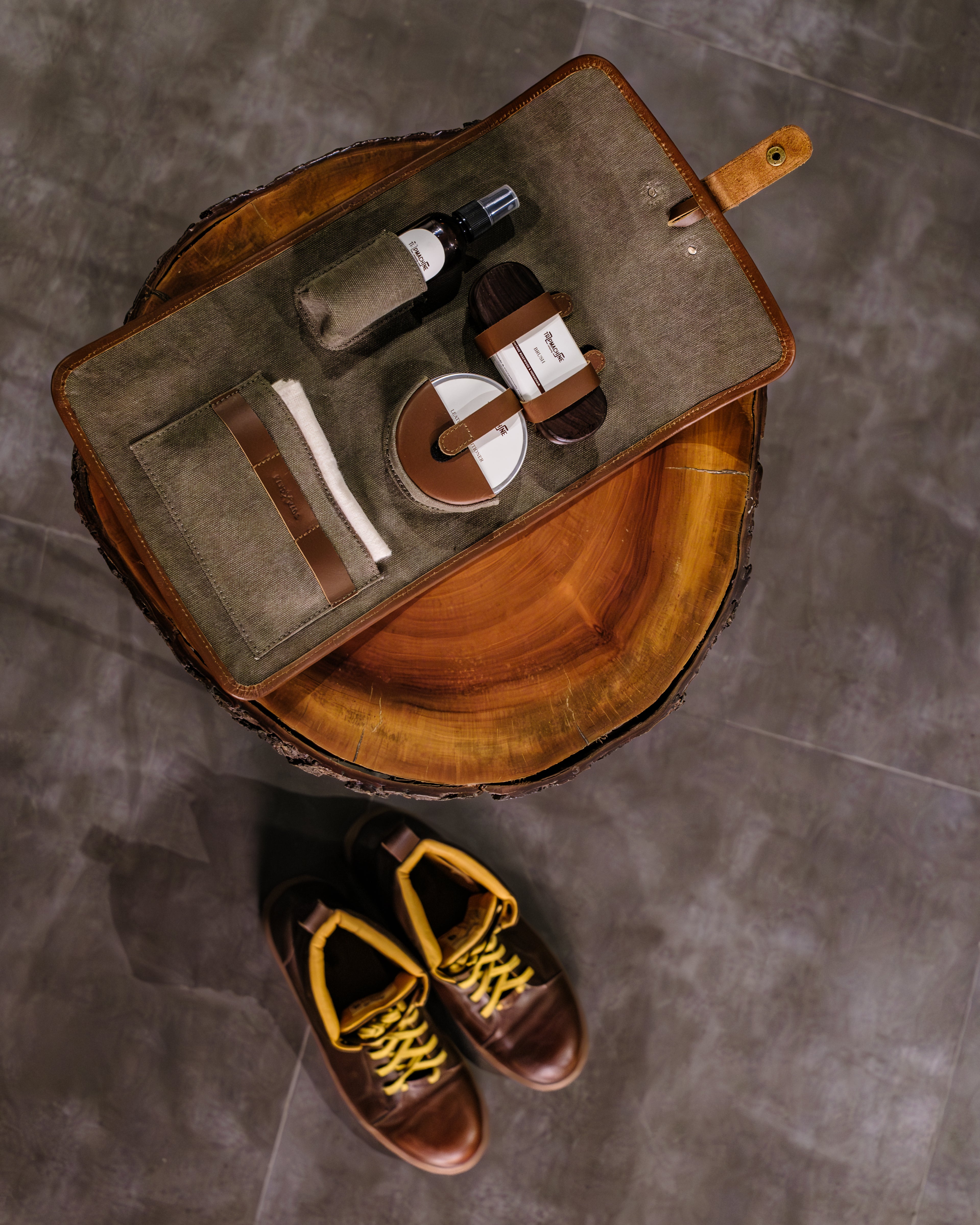 introducing the trip machine leather care kit, the most effective leather care solution we’ve ever used. this is the same combination we’ve relied on for years to clean our own leather gear. it all comes together, neatly housed in a travel-ready, signature trip machine styled tool kit.