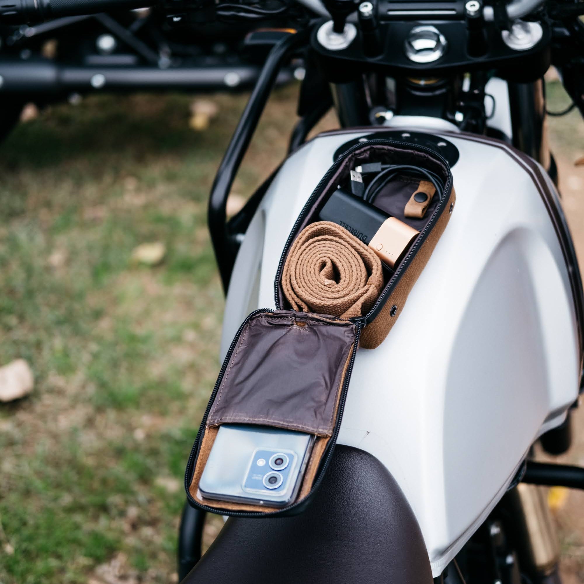 the navigator is the perfect amalgamation of the phone pouch and the tank pouch. the compact size makes it the perfect everyday carry on and off the motorcycle.