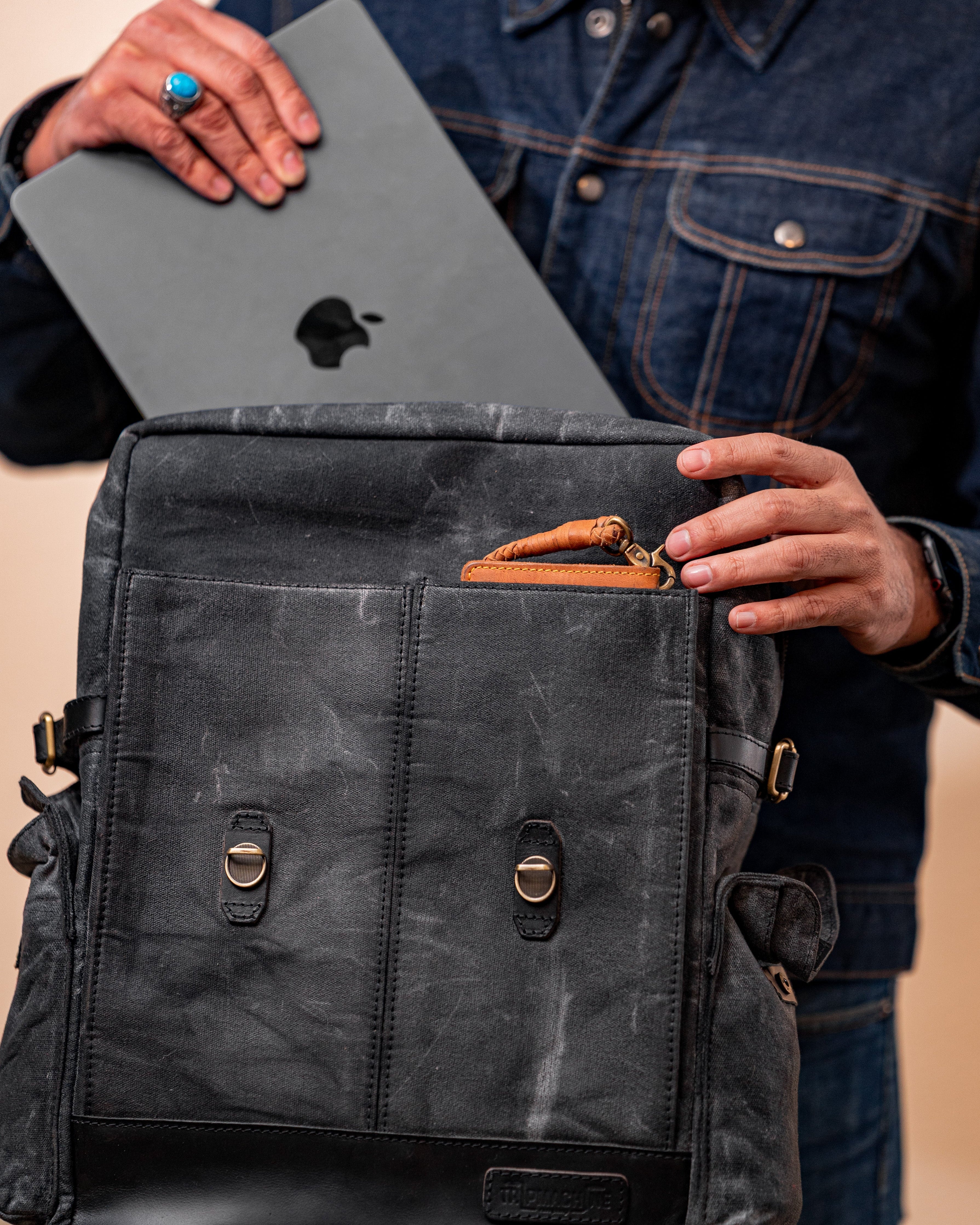 the rambler is our first venture into incorporating heavy duty waxed canvas with our signature crunch leather. forged with our classic old school design philosophy, that believes in crafting goods for years of use and abuse