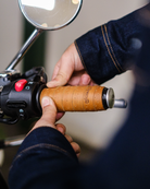 the perforated grips wraps add the finishing touch — reducing handlebar vibrations while enhancing your grip and control. designed for riders who appreciate both performance and style, they give your motorcycle a refined, vintage character. handcrafted from premium perforated leather and fixed using heavy-duty 3m tape, they not only improve comfort but age beautifully with every ride.