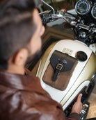 the tank pouch is your everyday riding companion — compact yet spacious enough to carry all your on-road necessities like keys, gloves, wallet, or bandana. crafted for the modern adventurer with an old-school heart, it’s made from the finest leather that only gets better with age. the pouch sticks securely to your tank using six super-powerful magnets that hold steady through every twist, turn, and bump. and when you’re off the bike, it hooks effortlessly to your belt, staying by your side wherever you go.